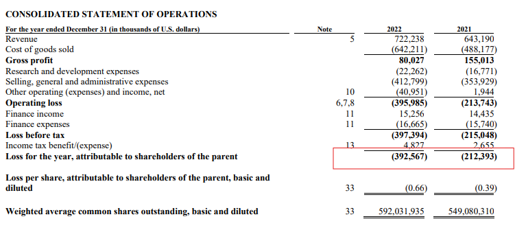 Öffnest du den ein oder anderen Annual Report der zurückliegenden Jahre an, dann kannst du relativ schnell nachvollziehen, warum der Oatly Chart ein Chart des Grauens ist. Bei der Beschäftigung mit einer Firma ist die Gewinn- und Verlustrechnung äußert hilfreich, weil du dort einen Überblick über, wie der Name schon sagt, die Gewinne und Verluste in einem Zeitraum bekommst. Fangen wir mal mit den Zahlen der Gewinn- und Verlustrechnung für die Jahre 2021 und 2022 an.